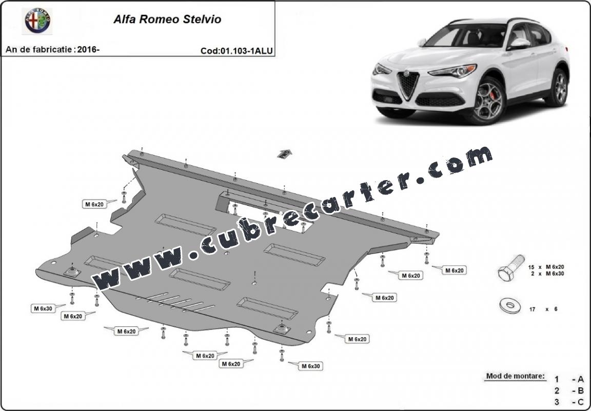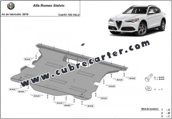 El cubre carter metalico es nuevo y se adapta perfectamente al Alfa Romeo Stelvio, con las siguientes versiones de motor / accionamiento: toate, fabricado entre 2016 y 2025. La placa protega los siguientes: motor, caja de cambios Está preparado de chapa de Aluminio de 3 mm. Los escudos son de aluminio, pero los soportes de fijación son de acero. Cerrojos, calces y todos los accesorios incluidos. Todas las placas son estrachadas con pintura de polvo anticorrosivo. Las placas del protección del motor son equipados con braceares soldados para resistir mejor a los impactos exteriores. |