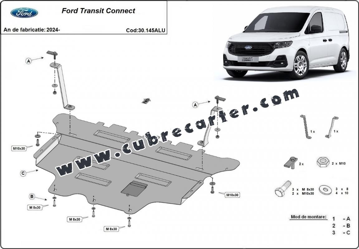 El cubre carter metalico es nuevo y se adapta perfectamente al Ford Transit Connect, con las siguientes versiones de motor / accionamiento: toate, fabricado entre 2024 y 2025. La placa protega los siguientes: motor, caja de cambios, radiador, parachoques delantero Está preparado de chapa de Aluminio de 3 mm. Los escudos son de aluminio, pero los soportes de fijación son de acero. Cerrojos, calces y todos los accesorios incluidos. Todas las placas son estrachadas con pintura de polvo anticorrosivo. Las placas del protección del motor son equipados con braceares soldados para resistir mejor a los impactos exteriores. |