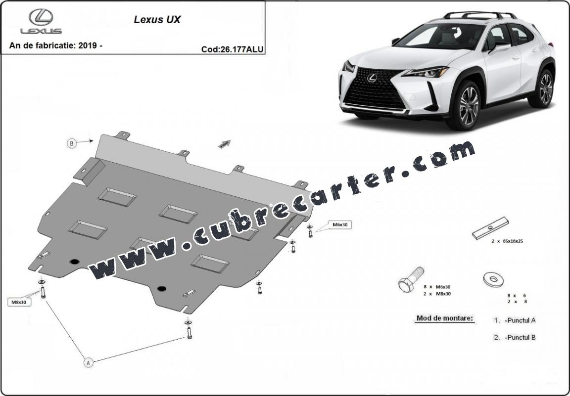 El cubre carter metalico es nuevo y se adapta perfectamente al Lexus UX, con las siguientes versiones de motor / accionamiento: toate, fabricado entre 2019 y 2025. La placa protega los siguientes: motor, caja de cambios, radiador Está preparado de chapa de Aluminio de 3 mm. Los escudos son de aluminio, pero los soportes de fijación son de acero. Cerrojos, calces y todos los accesorios incluidos. Todas las placas son estrachadas con pintura de polvo anticorrosivo. Las placas del protección del motor son equipados con braceares soldados para resistir mejor a los impactos exteriores. |