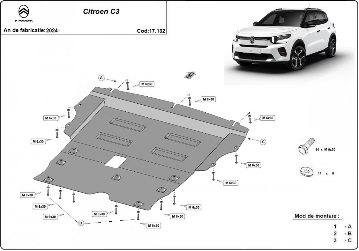 El cubre carter metalico es nuevo y se adapta perfectamente a todas las versiones de Citroen C3 fabricadas entre 2024 y 2026. La placa protega los siguientes: motor, caja de cambios Está preparado de chapa de Acero de 2 mm. Cerrojos, calces y todos los accesorios incluidos. Todas las placas son estrachadas con pintura de polvo anticorrosivo. Las placas del protección del motor son equipados con braceares soldados para resistir mejor a los impactos exteriores. |