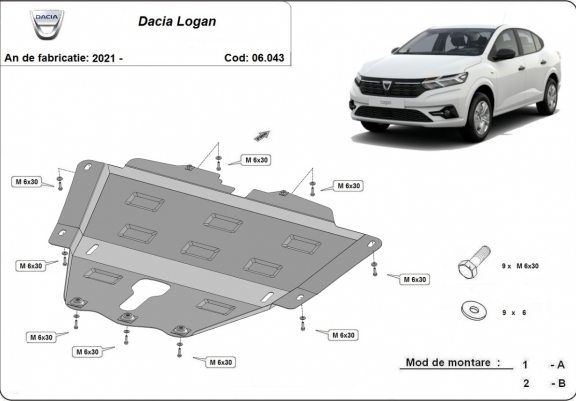 El cubre carter metalico es nuevo y se adapta perfectamente a todas las versiones de Dacia Logan fabricadas entre 2021 y 2026. La placa protega los siguientes: motor, caja de cambios Está preparado de chapa de Acero de 2 mm. Cerrojos, calces y todos los accesorios incluidos. Todas las placas son estrachadas con pintura de polvo anticorrosivo. Las placas del protección del motor son equipados con braceares soldados para resistir mejor a los impactos exteriores. |