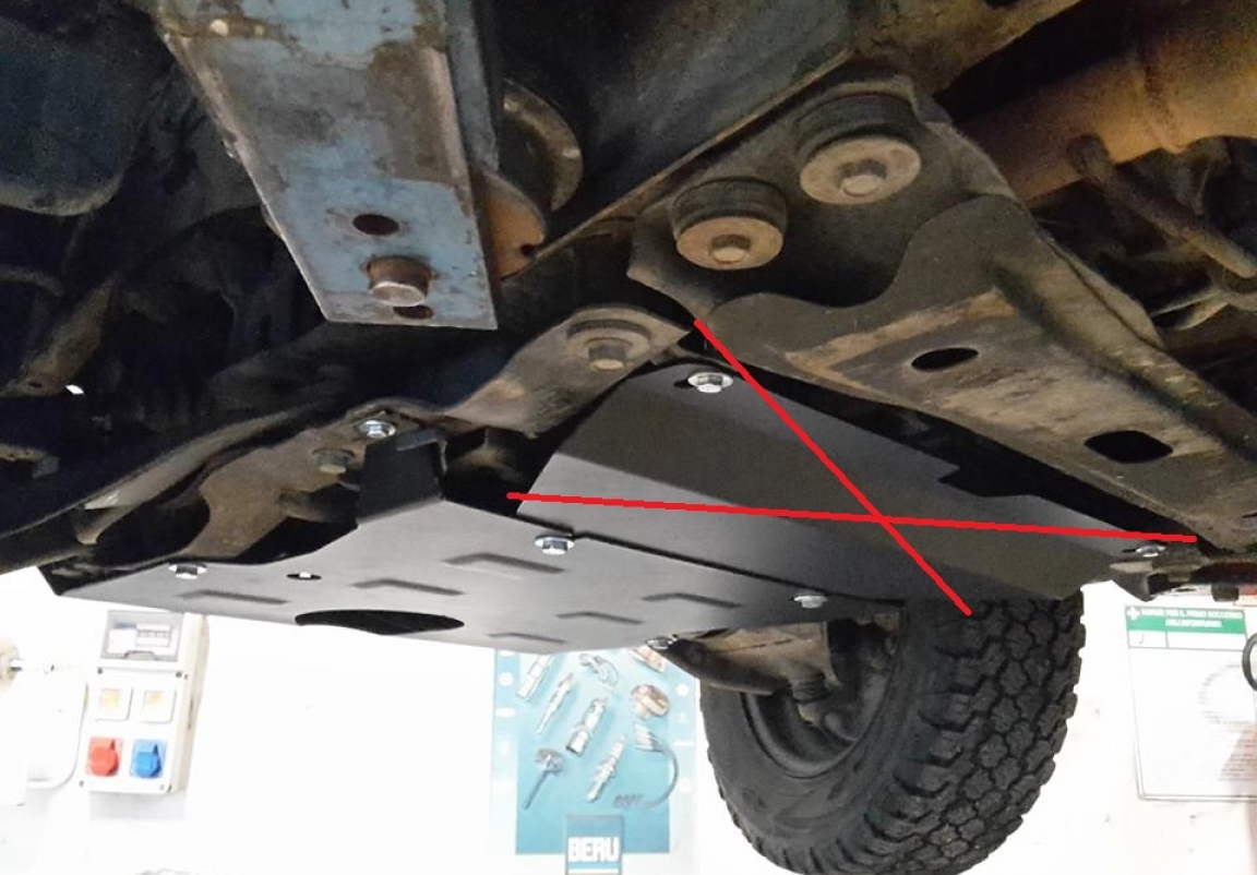 El cubre carter metalico es nuevo y se adapta perfectamente a todas las versiones de Daihatsu Terios fabricadas entre 1997 y 2006. La placa protega los siguientes: motor, radiador Está preparado de chapa de Acero de 3 mm. Cerrojos, calces y todos los accesorios incluidos. Todas las placas son estrachadas con pintura de polvo anticorrosivo. Las placas del protección del motor son equipados con braceares soldados para resistir mejor a los impactos exteriores. |