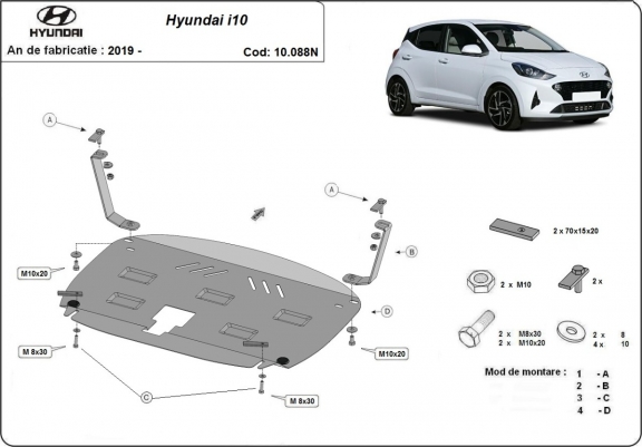 El cubre carter metalico es nuevo y se adapta perfectamente a todas las versiones de Hyundai i10 fabricadas entre 2019 y 2026. La placa protega los siguientes: motor, caja de cambios, radiador Está preparado de chapa de Acero de 2 mm. Cerrojos, calces y todos los accesorios incluidos. Todas las placas son estrachadas con pintura de polvo anticorrosivo. Las placas del protección del motor son equipados con braceares soldados para resistir mejor a los impactos exteriores. |