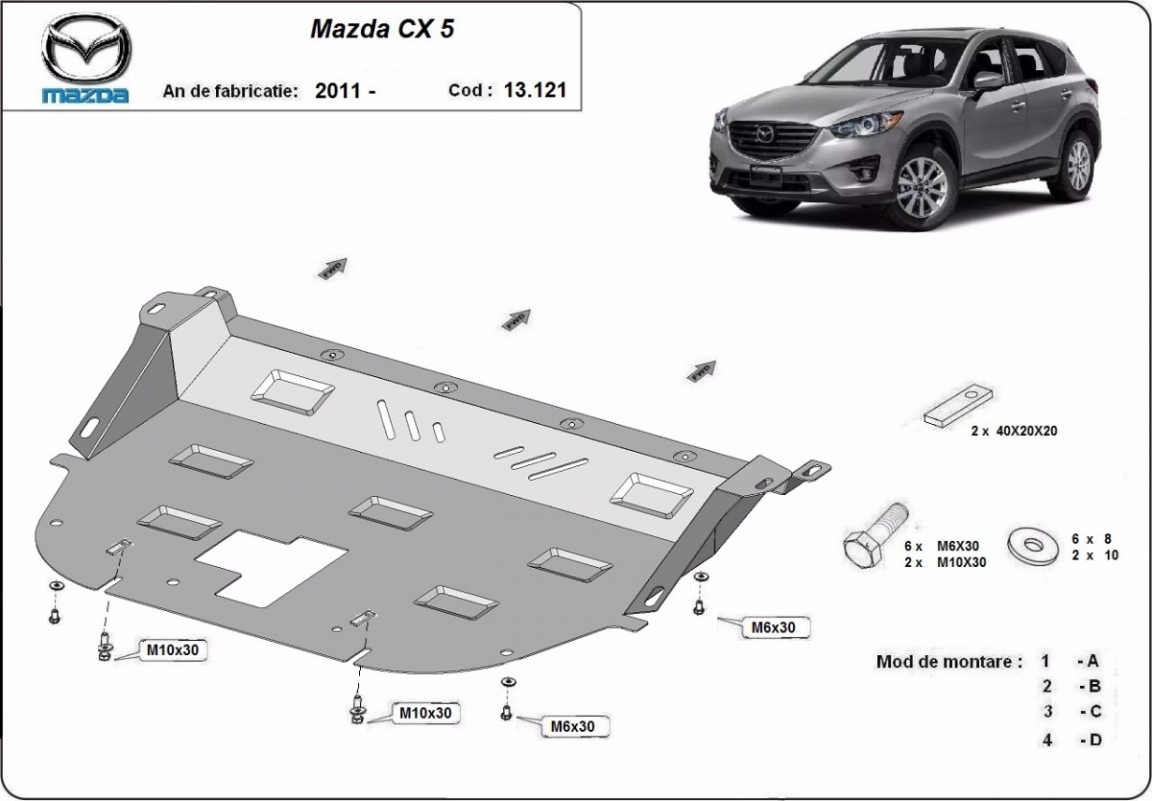 El cubre carter metalico es nuevo y se adapta perfectamente a todas las versiones de Mazda CX5 fabricadas entre 2011 y 2026. La placa protega los siguientes: motor, caja de cambios, radiador Está preparado de chapa de Acero de 2 mm. Cerrojos, calces y todos los accesorios incluidos. Todas las placas son estrachadas con pintura de polvo anticorrosivo. Las placas del protección del motor son equipados con braceares soldados para resistir mejor a los impactos exteriores. |