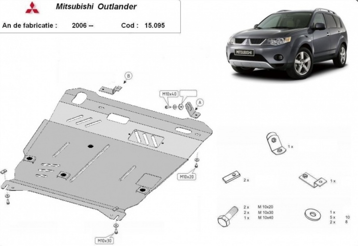 El cubre carter metalico es nuevo y se adapta perfectamente a todas las versiones de Mitsubishi Outlander fabricadas entre 2006 y 2012. La placa protega los siguientes: motor, caja de cambios, radiador Montada con salida de petróleo descendido así que no es necesario el cambio del petróleo cuando se quita la placa. Está preparado de chapa de Acero de 2.5 mm. Cerrojos, calces y todos los accesorios incluidos. Todas las placas son estrachadas con pintura de polvo anticorrosivo. Las placas del protección del motor son equipados con braceares soldados para resistir mejor a los impactos exteriores. |