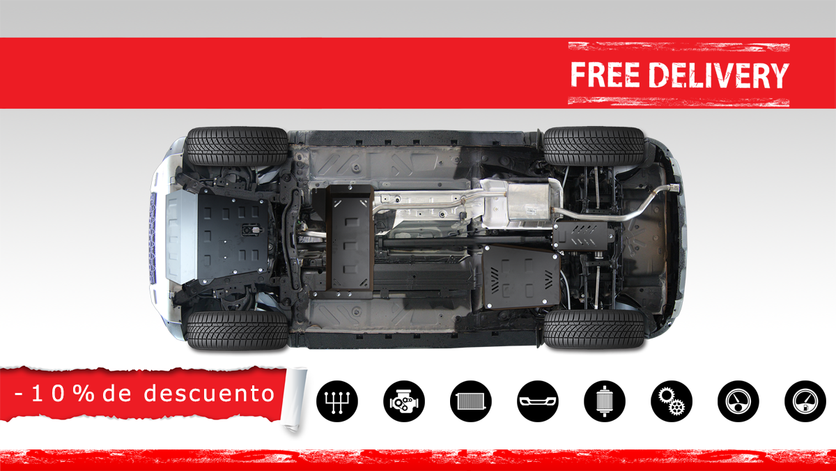 El cubre carter metalico es nuevo y se adapta perfectamente al Mitsubishi Montero Sport 1, con las siguientes versiones de motor / accionamiento: toate, fabricado entre 1998 y 2007. La placa protega los siguientes: motor, radiador Está preparado de chapa de Acero de 3 mm. Cerrojos, calces y todos los accesorios incluidos. Todas las placas son estrachadas con pintura de polvo anticorrosivo. Las placas del protección del motor son equipados con braceares soldados para resistir mejor a los impactos exteriores. |