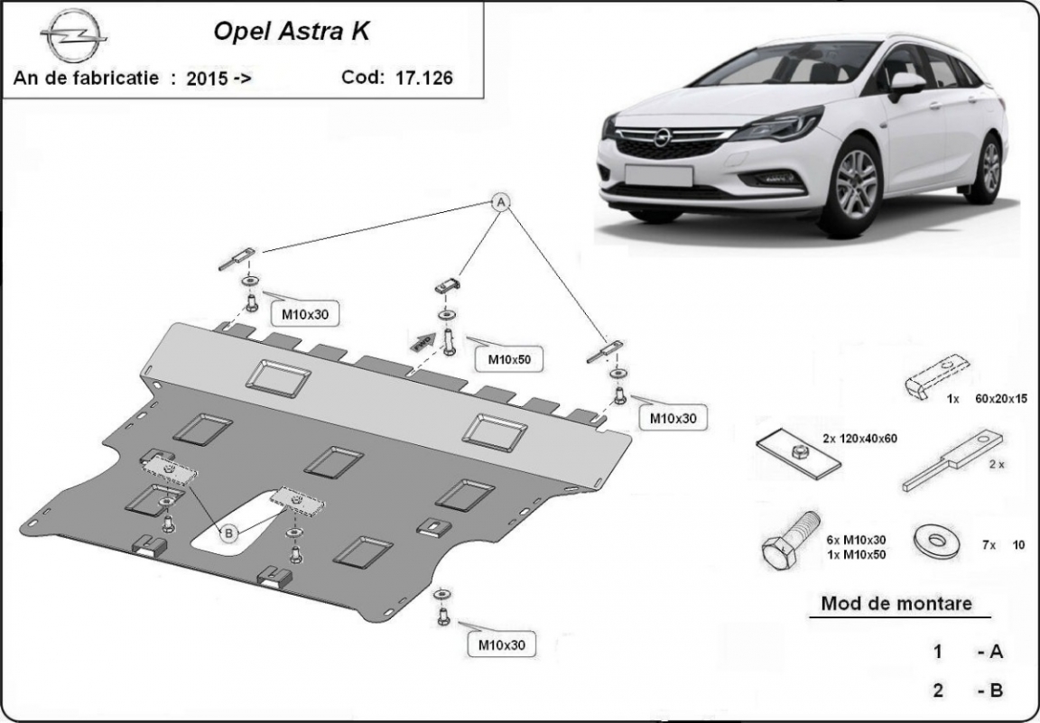 El cubre carter metalico es nuevo y se adapta perfectamente a todas las versiones de Opel Astra K fabricadas entre 2015 y 2022. La placa protega los siguientes: motor, caja de cambios, radiador, parachoques delantero Está preparado de chapa de Acero de 2 mm. Cerrojos, calces y todos los accesorios incluidos. Todas las placas son estrachadas con pintura de polvo anticorrosivo. Las placas del protección del motor son equipados con braceares soldados para resistir mejor a los impactos exteriores. |