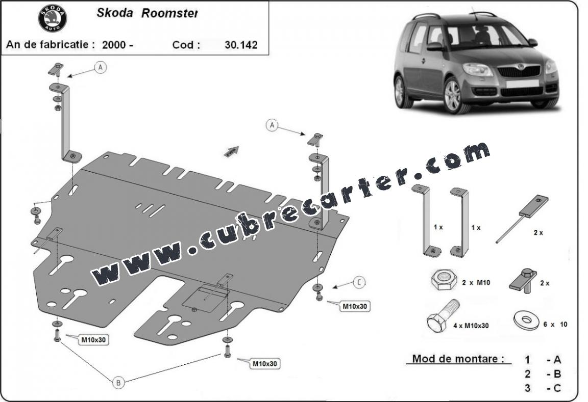 El cubre carter metalico es nuevo y se adapta perfectamente al Skoda Roomster, con las siguientes versiones de motor / accionamiento: toate, fabricado entre 2006 y 2015. La placa protega los siguientes: motor, caja de cambios, radiador, parachoques delantero Montada con salida de petróleo descendido así que no es necesario el cambio del petróleo cuando se quita la placa. Está preparado de chapa de Acero de 2 mm. Cerrojos, calces y todos los accesorios incluidos. Todas las placas son estrachadas con pintura de polvo anticorrosivo. Las placas del protección del motor son equipados con braceares soldados para resistir mejor a los impactos exteriores. |
