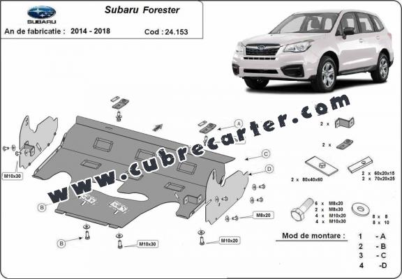 El cubre carter metalico es nuevo y se adapta perfectamente al Subaru Forester 4, con las siguientes versiones de motor / accionamiento: toate, fabricado entre 2014 y 2018. La placa protega los siguientes: motor, radiador Está preparado de chapa de Acero de 2 mm. Cerrojos, calces y todos los accesorios incluidos. Todas las placas son estrachadas con pintura de polvo anticorrosivo. Las placas del protección del motor son equipados con braceares soldados para resistir mejor a los impactos exteriores. |