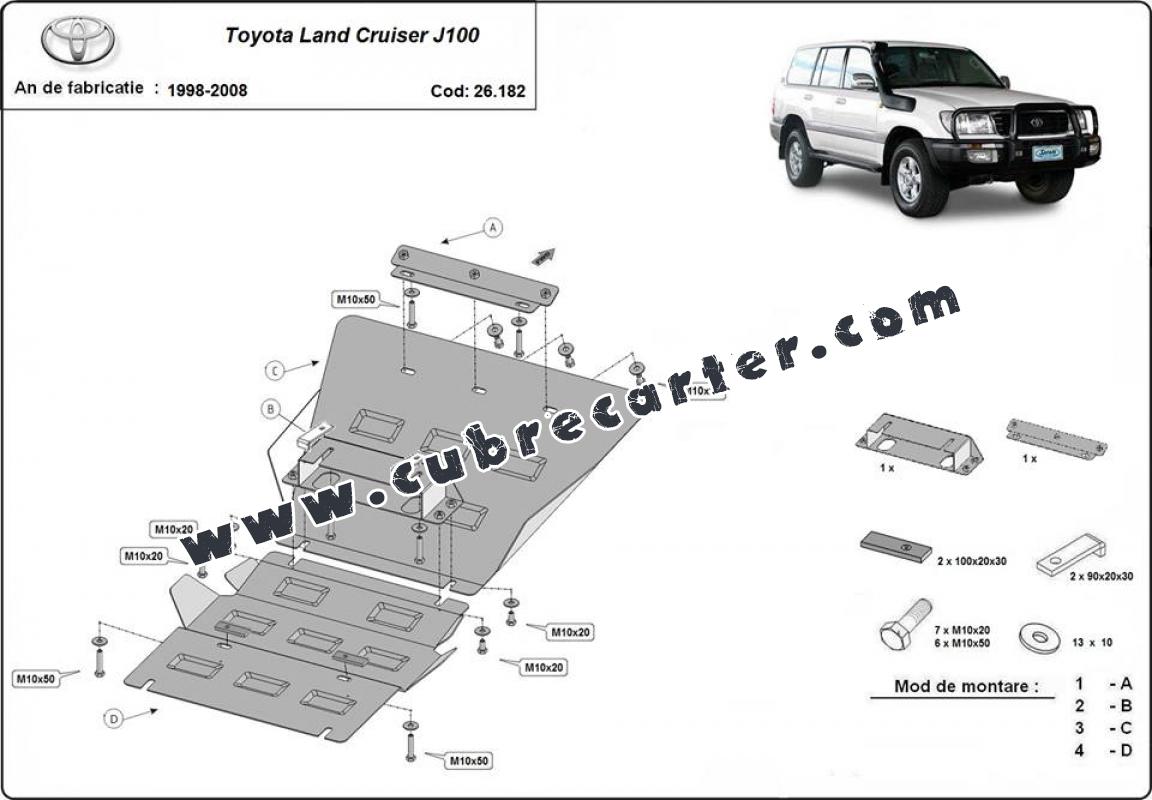 El cubre carter metalico es nuevo y se adapta perfectamente al Toyota Land Cruiser J100, con las siguientes versiones de motor / accionamiento: toate, fabricado entre 1998 y 2008. La placa protega los siguientes: motor, radiador, parachoques delantero Está preparado de chapa de Acero de 2.5 mm. Cerrojos, calces y todos los accesorios incluidos. Todas las placas son estrachadas con pintura de polvo anticorrosivo. Las placas del protección del motor son equipados con braceares soldados para resistir mejor a los impactos exteriores. |