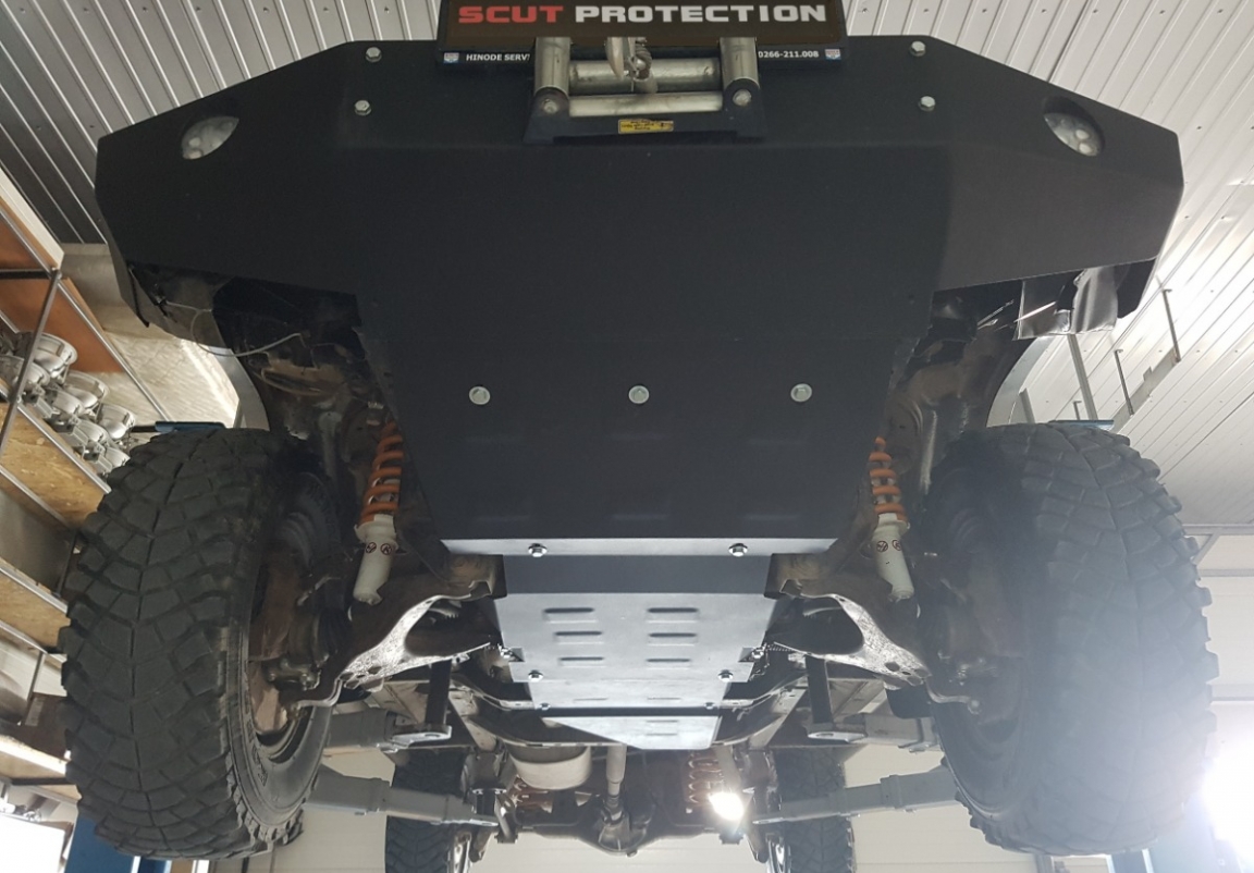 El cubre carter metalico es nuevo y se adapta perfectamente a todas las versiones de Toyota Land Cruiser J90 fabricadas entre 1995 y 2002. La placa protega los siguientes: motor, radiador, parachoques delantero Está preparado de chapa de Acero de 2.5 mm. Cerrojos, calces y todos los accesorios incluidos. Todas las placas son estrachadas con pintura de polvo anticorrosivo. Las placas del protección del motor son equipados con braceares soldados para resistir mejor a los impactos exteriores. |