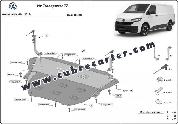 El cubre carter metalico es nuevo y se adapta perfectamente al Volkswagen Transporter T7 Van, con las siguientes versiones de motor / accionamiento: toate, fabricado entre 2023 y 2025. La placa protega los siguientes: motor, caja de cambios, radiador Está preparado de chapa de Acero de 2 mm. Cerrojos, calces y todos los accesorios incluidos. Todas las placas son estrachadas con pintura de polvo anticorrosivo. Las placas del protección del motor son equipados con braceares soldados para resistir mejor a los impactos exteriores. |