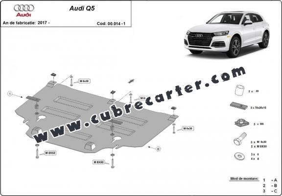 El cubre carter metalico es nuevo y se adapta perfectamente al Audi Q5, con las siguientes versiones de motor / accionamiento: toate, fabricado entre 2017 y 2025.