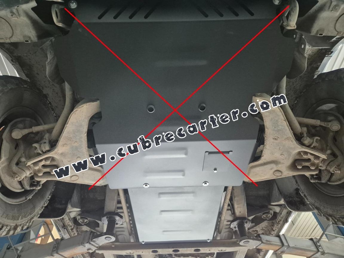 El cubre carter metalico es nuevo y se adapta perfectamente al Hyundai Terracan, con las siguientes versiones de motor / accionamiento: toate, fabricado entre 2001 y 2007. La placa protega los siguientes: caja de cambios Está preparado de chapa de Acero de 2.5 mm. Cerrojos, calces y todos los accesorios incluidos. Todas las placas son estrachadas con pintura de polvo anticorrosivo. Las placas del protección del motor son equipados con braceares soldados para resistir mejor a los impactos exteriores. |