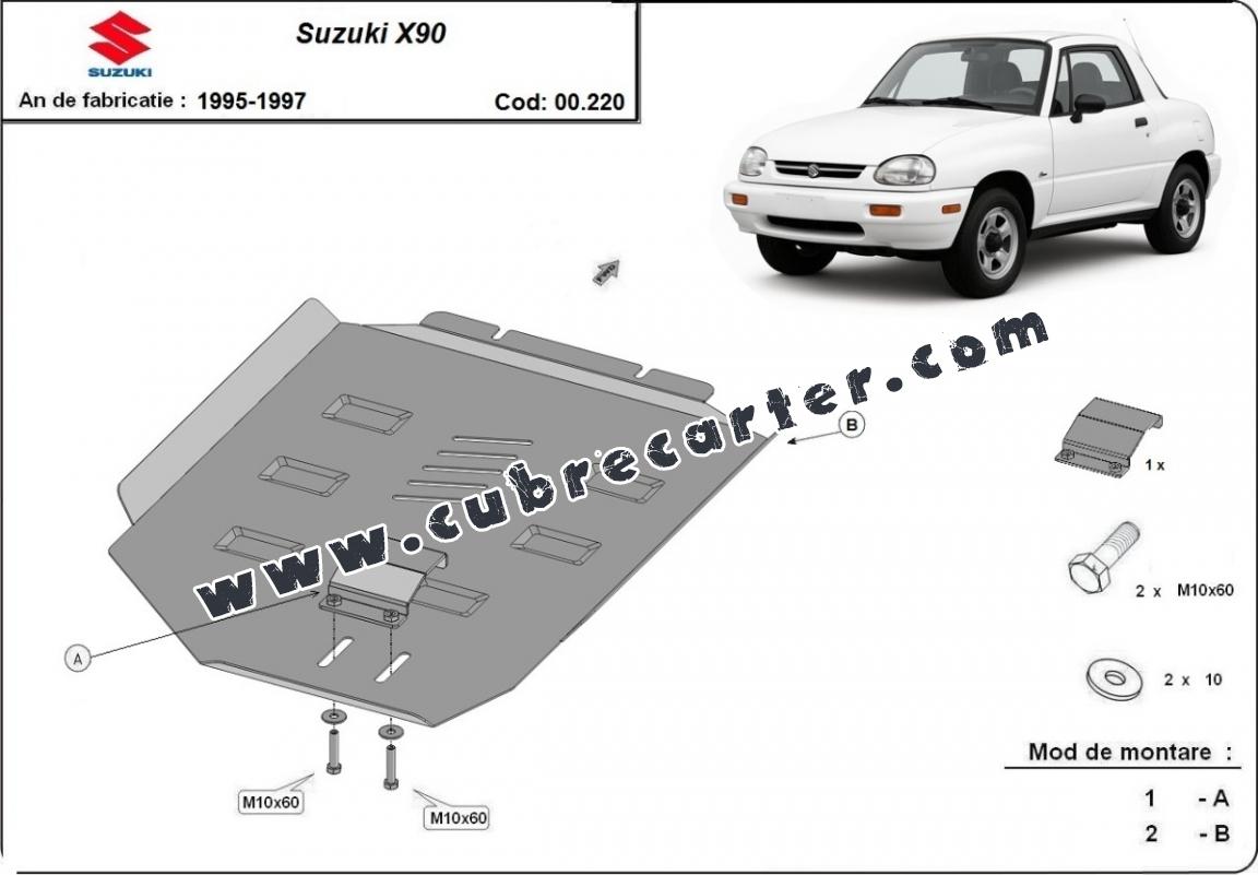 El cubre carter metalico es nuevo y se adapta perfectamente al Suzuki X90, con las siguientes versiones de motor / accionamiento: toate, fabricado entre 1988 y 1999. La placa protega los siguientes: caja de cambios Está preparado de chapa de Acero de 3 mm. Cerrojos, calces y todos los accesorios incluidos. Todas las placas son estrachadas con pintura de polvo anticorrosivo. Las placas del protección del motor son equipados con braceares soldados para resistir mejor a los impactos exteriores. |