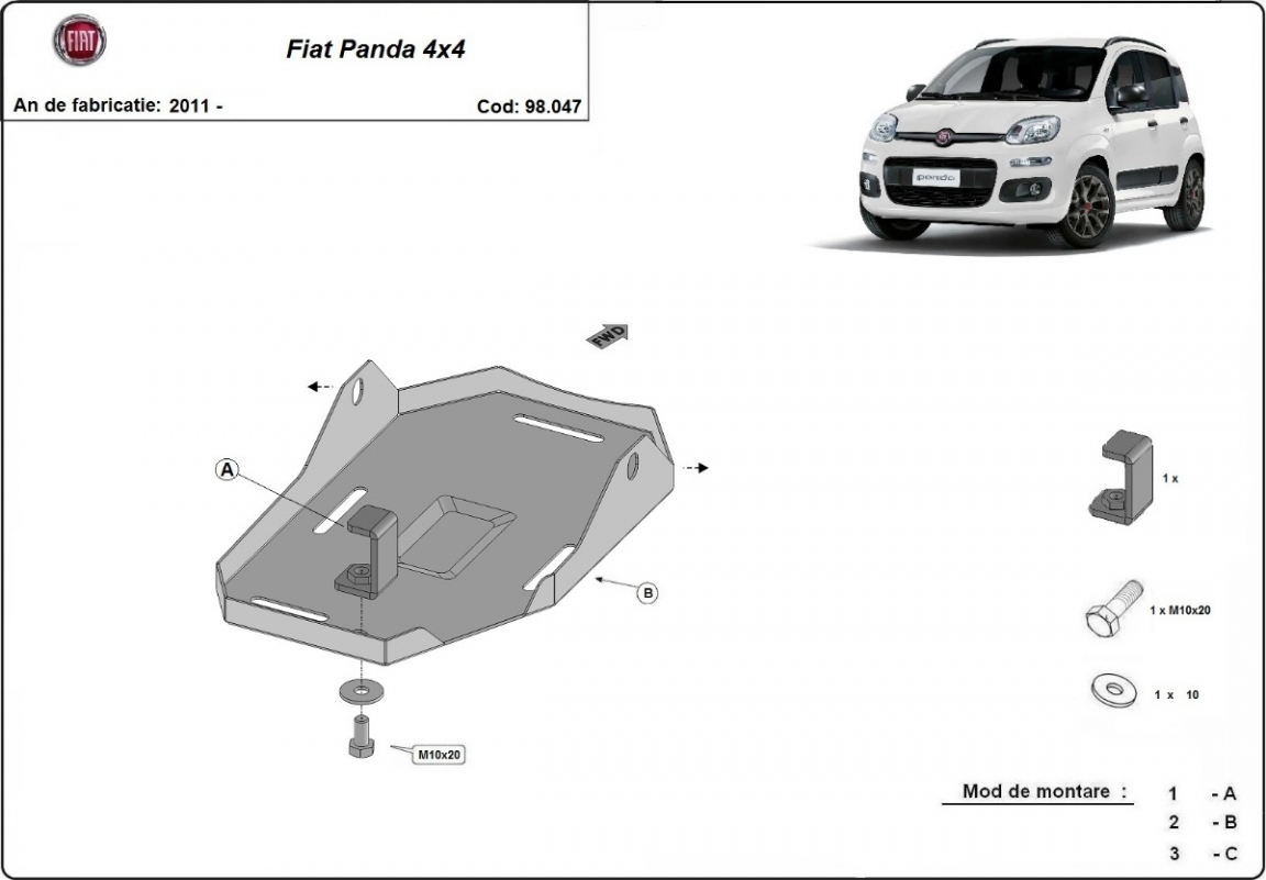 El cubre carter metalico es nuevo y se adapta perfectamente a todas las versiones de Fiat Panda 4x4 fabricadas entre 2011 y 2026. La placa protega los siguientes: diferencial trasero Está preparado de chapa de Acero de 2 mm. Cerrojos, calces y todos los accesorios incluidos. Todas las placas son estrachadas con pintura de polvo anticorrosivo. Las placas del protección del motor son equipados con braceares soldados para resistir mejor a los impactos exteriores. |