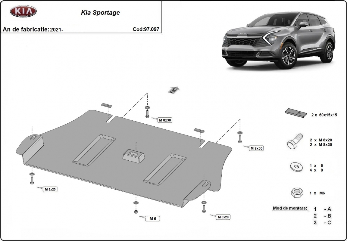 El cubre carter metalico es nuevo y se adapta perfectamente a todas las versiones de Kia sportage fabricadas entre 2021 y 2026. La placa protega los siguientes: Conversor catalítico Está preparado de chapa de Acero de 2 mm. Cerrojos, calces y todos los accesorios incluidos. Todas las placas son estrachadas con pintura de polvo anticorrosivo. Las placas del protección del motor son equipados con braceares soldados para resistir mejor a los impactos exteriores. |