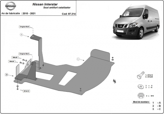 El cubre carter metalico es nuevo y se adapta perfectamente a todas las versiones de Nissan Interstar fabricadas entre 2010 y 2021. La placa protega los siguientes: Conversor catalítico Está preparado de chapa de Acero de 2 mm. Cerrojos, calces y todos los accesorios incluidos. Todas las placas son estrachadas con pintura de polvo anticorrosivo. Las placas del protección del motor son equipados con braceares soldados para resistir mejor a los impactos exteriores. |